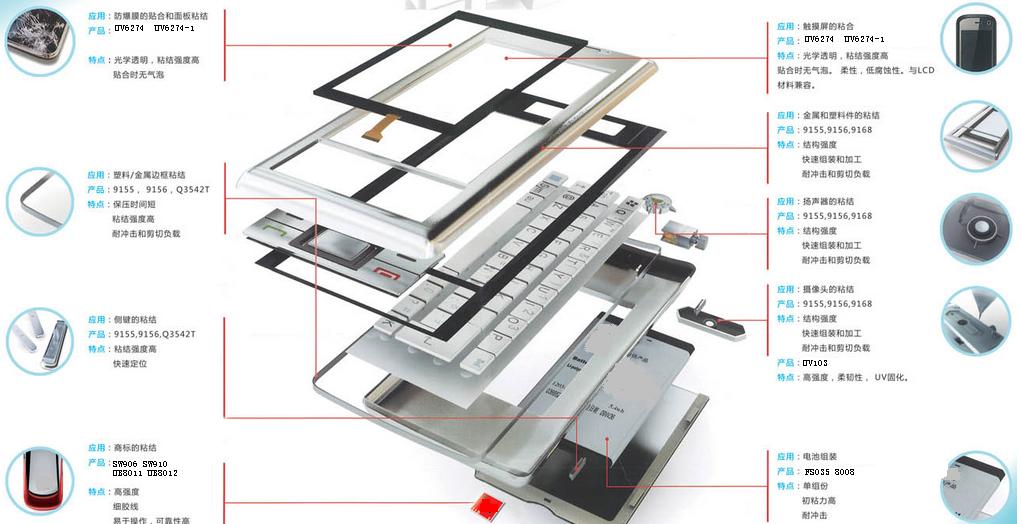 便携式电脑、手机&PDA、触摸屏应用、扬声器&振动马达、手机组装、窗口/触摸面板到盖板